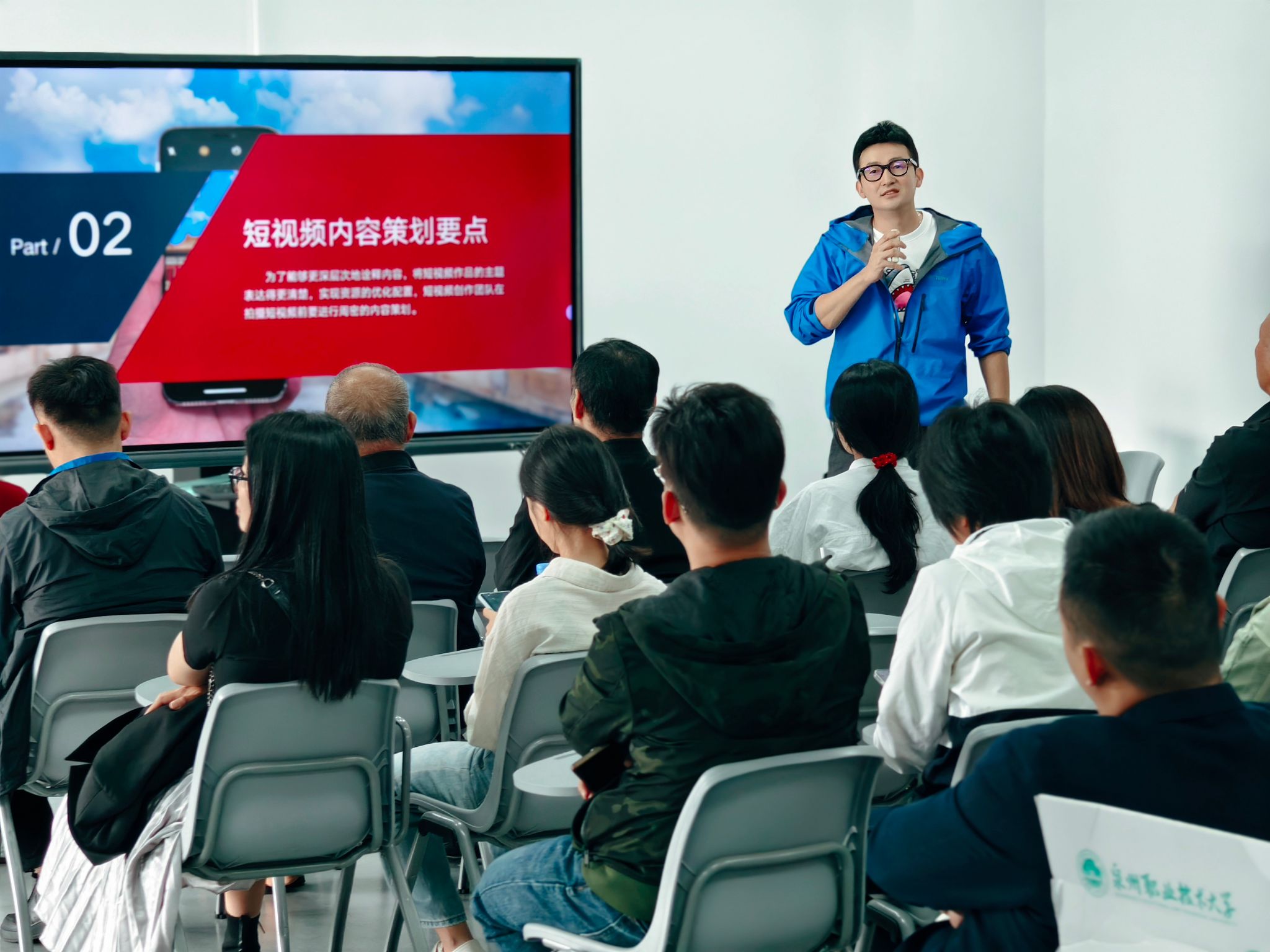 学校还将服务场景延伸至文化传承领域,组织学生走进中国闽台缘博物馆,开展文物数字化记录与文化IP创新实训,探索“文旅+专业”的育人新路径。教师应邀为晋江内坑镇“智能职场”技能培训班授课,将短视频创作与运营经验输送至企业一线。