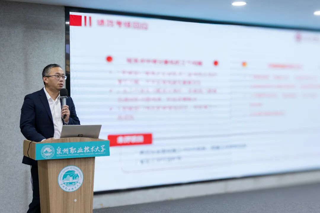 吴滨如强调,职业教育是距离产业最近的一种教育形式;职业教育高质量发展与城市、产业的繁荣密不可分;深化产教城融合,是职业院校尤其职业本科扎根地方的法宝。在牵头推动晋江国家级市域产教联合体建设过程中,学校主动置身于城市和产业的发展大局中,从“校企合作”“产教融合”走向“产教城融合”,从学校个体努力推动到城市产业多元联动,是最大的收获。作为牵头学校,主动担责,横向拉通“政校行企研”,推动产教融合、科教融汇,纵向贯通“中高本硕”,推动职普融通,努力做职教思想引领者、资源整合者、两翼推动者。学校将持续深耕探索职业教育服务区域经济发展的“晋江模式”,为职教本科高质量发展贡献泉大力量。