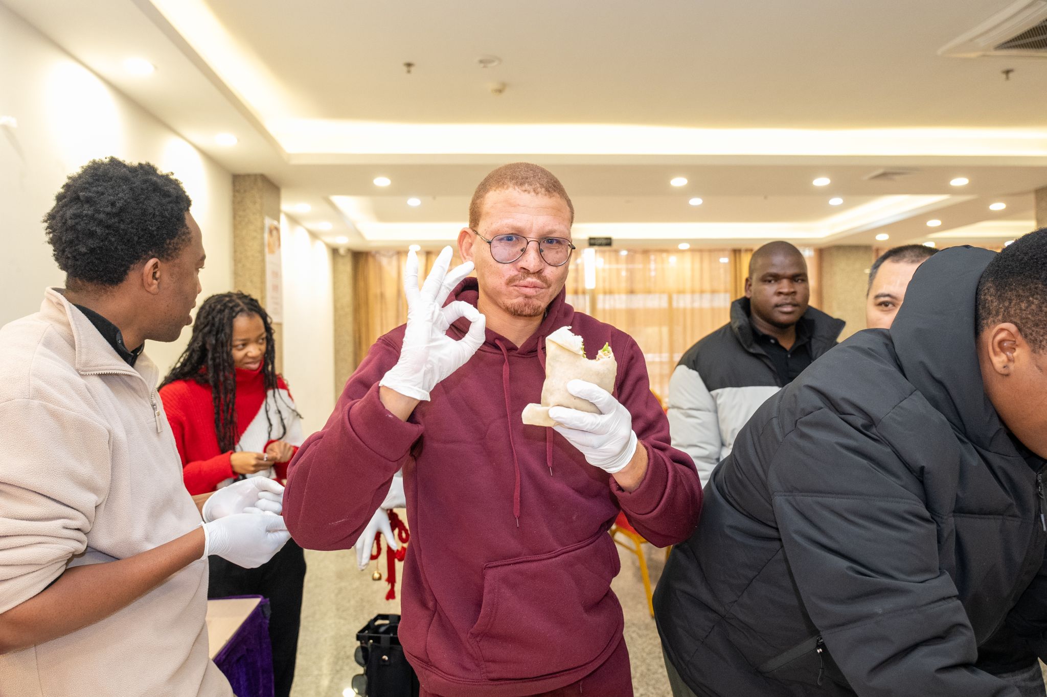 活动中,南非学员也端出家乡风味:香气四溢的Braai烧烤与清新爽口的Chakalaka沙拉、甜蜜蜜的PAP玉米饭,与中国美食同台亮相。学员Thanduxolo Lovepeace坦言,南非饮食辛辣重香料,中国菜则更加清爽可口,“润饼和饺子我都很喜欢!中国美食与南非菜肴同时上场,这正是文化交流的意义,我们都在学习彼此的‘味道’。”