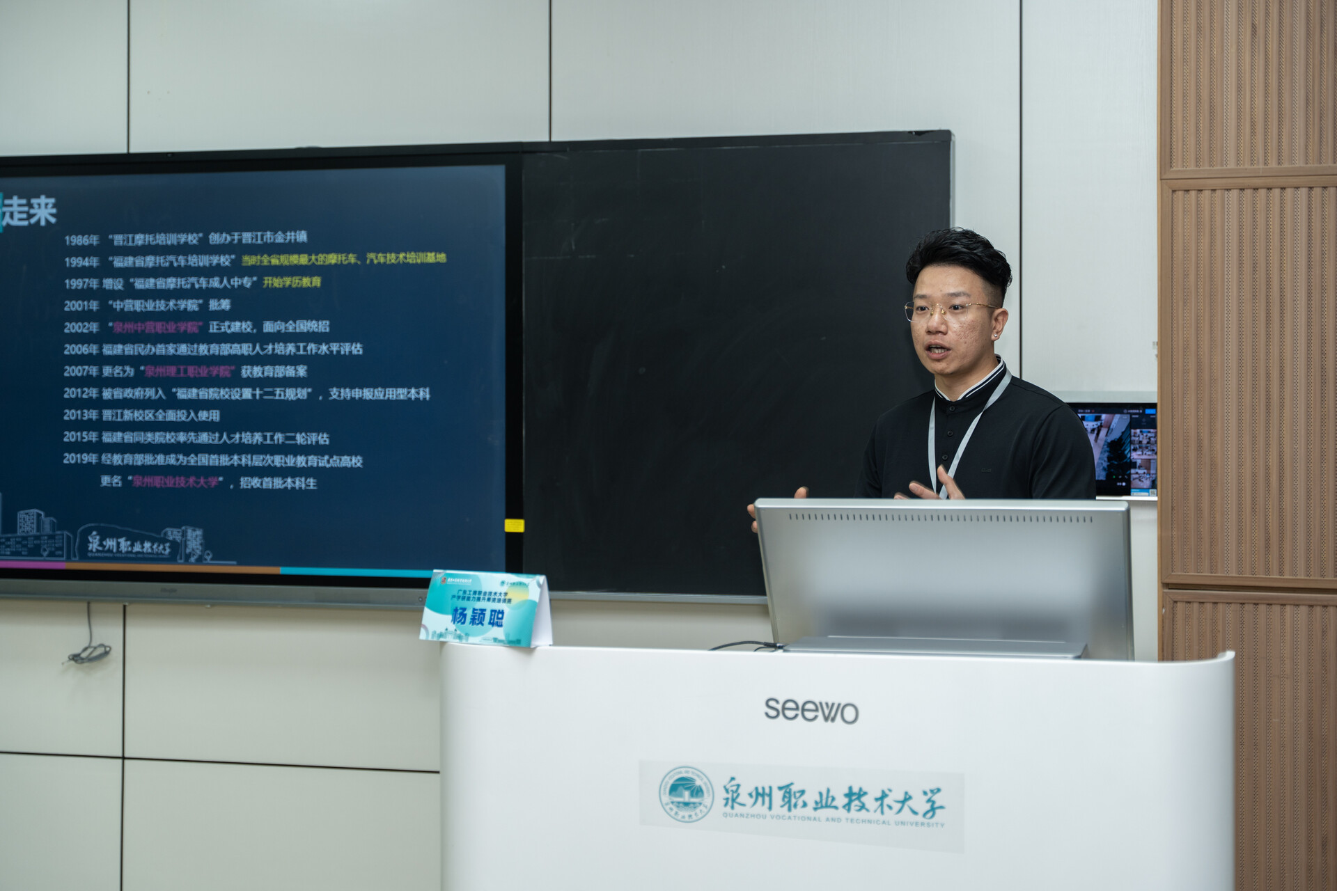 4月18日至20日,广东工商职业技术大学大旺校区管委会副主任郑志峰带领智能制造与汽车工程学院院长魏益群、人工智能与大数据学院副院长朱培培等10名骨干教师及管理人员,到泉州职业技术大学参加产学研能力提升师资培训班。培训由我校职业教育与民营经济发展研究中心主办、终身教育学院承办,以专题讲座、现场教学、实地考察、研讨交流相结合的方式进行。