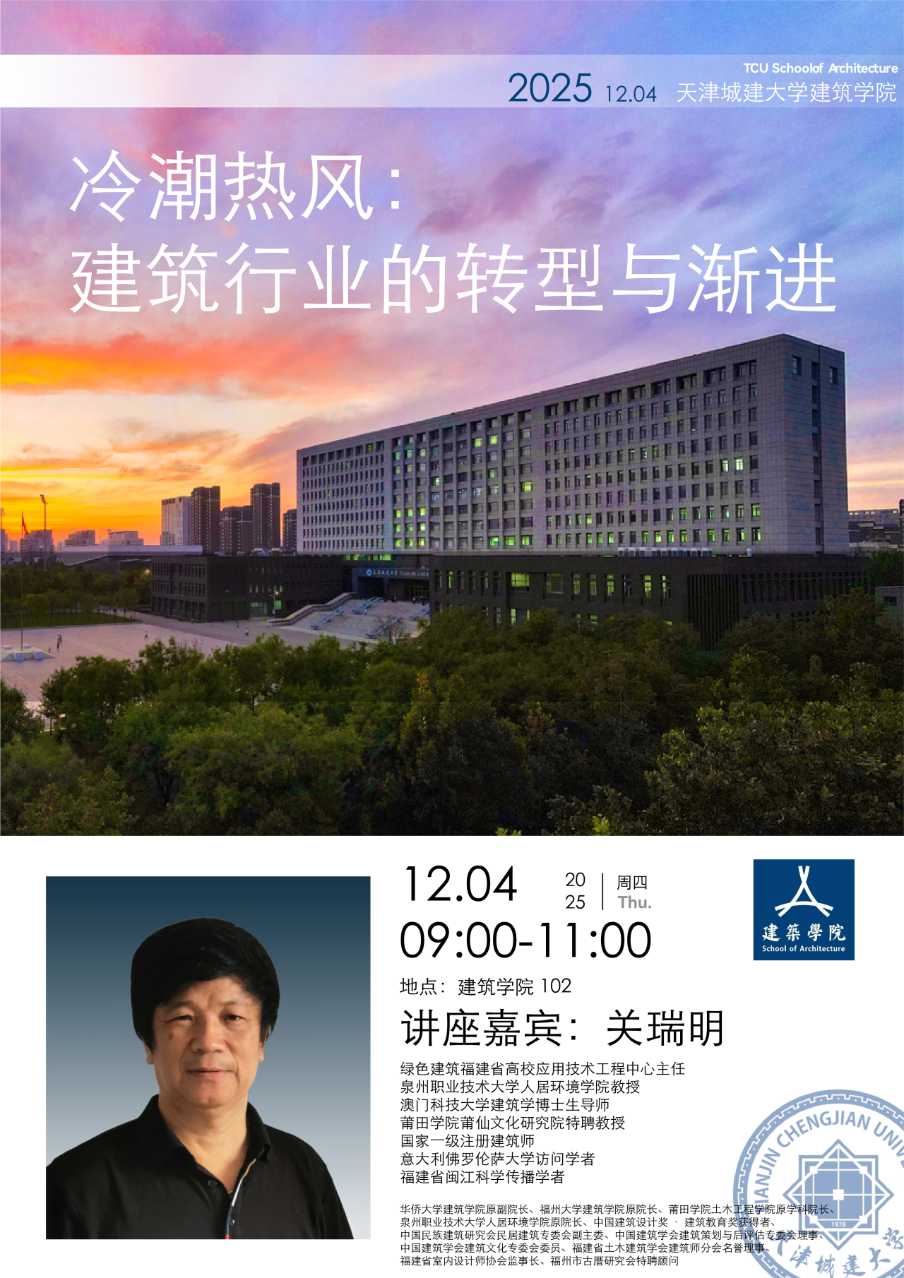 冷潮原是蛰伏期 热风送来好时机 | 我院关瑞明教授受邀为天津城建大学建筑学院师生作专题演讲