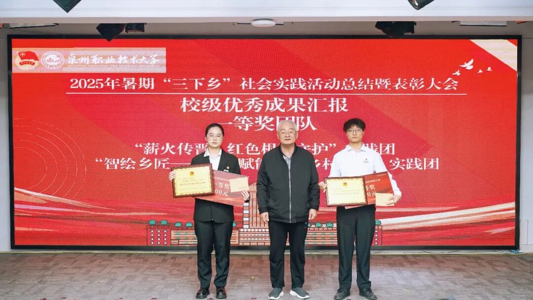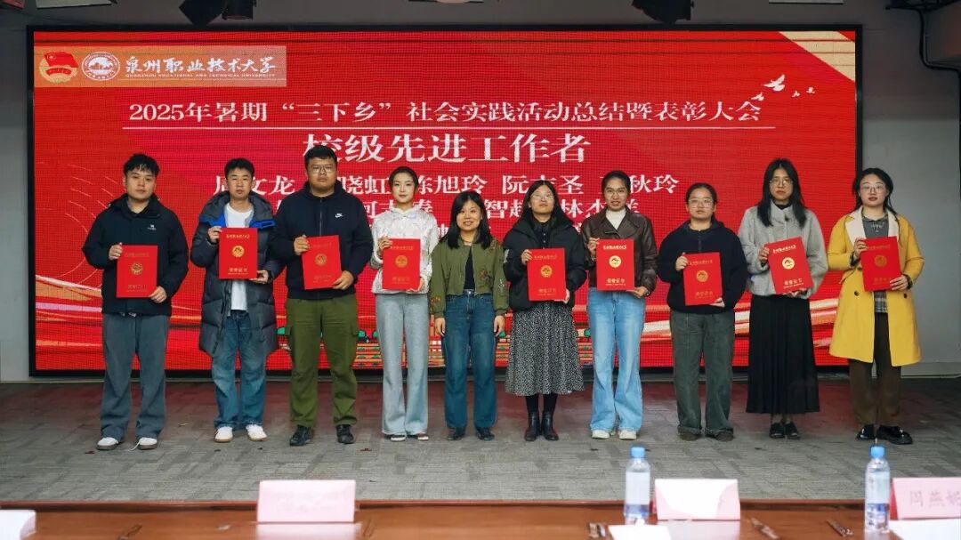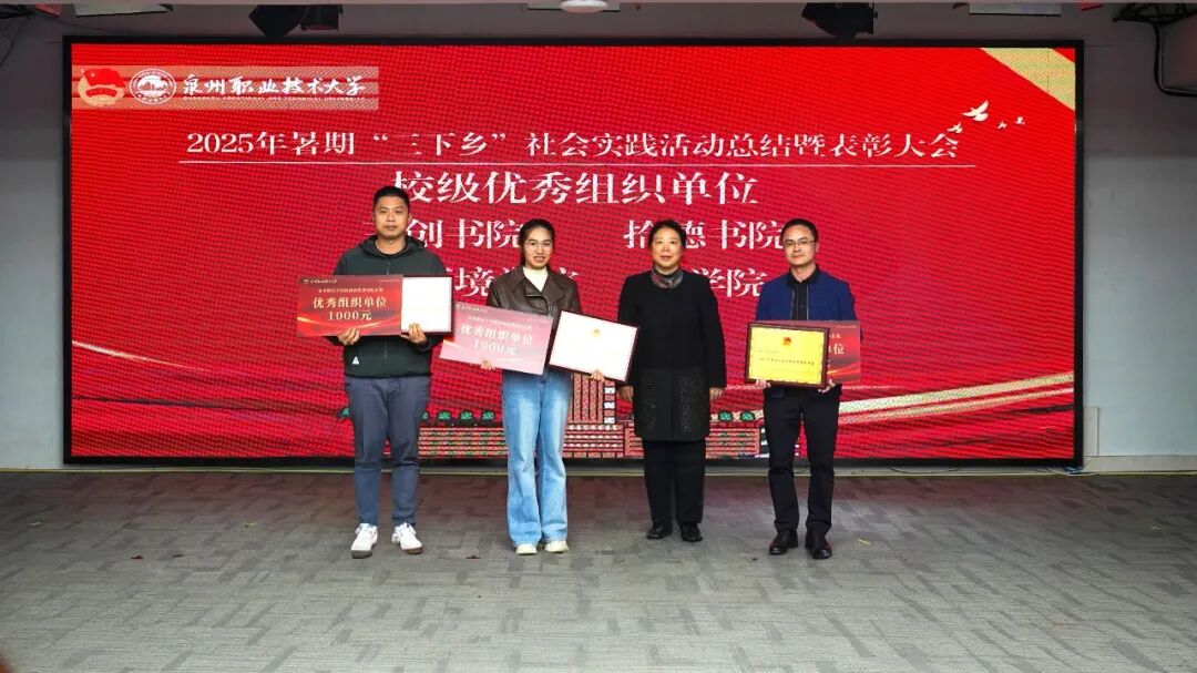 12月4日,泉州职业技术大学暑期社会实践表彰结果公布。我院积极响应乡村振兴战略及学校号召,创新采用“学院+书院”“学院+学院”双院联动模式,联合商学院、三创书院、八方书院等单位组建5支实践队,深入基层开展多元实践。凭借扎实成果与创新模式,学院获评校级社会实践“优秀组织奖”。其中,由张艺能、颜莉佳、陈佳阳、罗永珍四位老师指导的“智绘乡匠——环艺赋能红色乡村振兴”实践团,以及与三创书院共同开展的“薪火传晋·红色根脉守护”实践团,分获校级社会实践一等奖及“十佳团队”称号,颜莉佳老师获评“社会实践优秀工作者”。