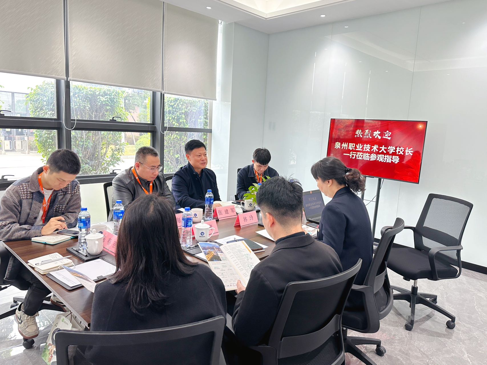 我校张建军副校长首先对企业的热情接待致以衷心感谢。随后,他向企业简要介绍了学校的办学定位、发展历程、职业教育、双高建设、省级科研平台等建设成果育人特色。